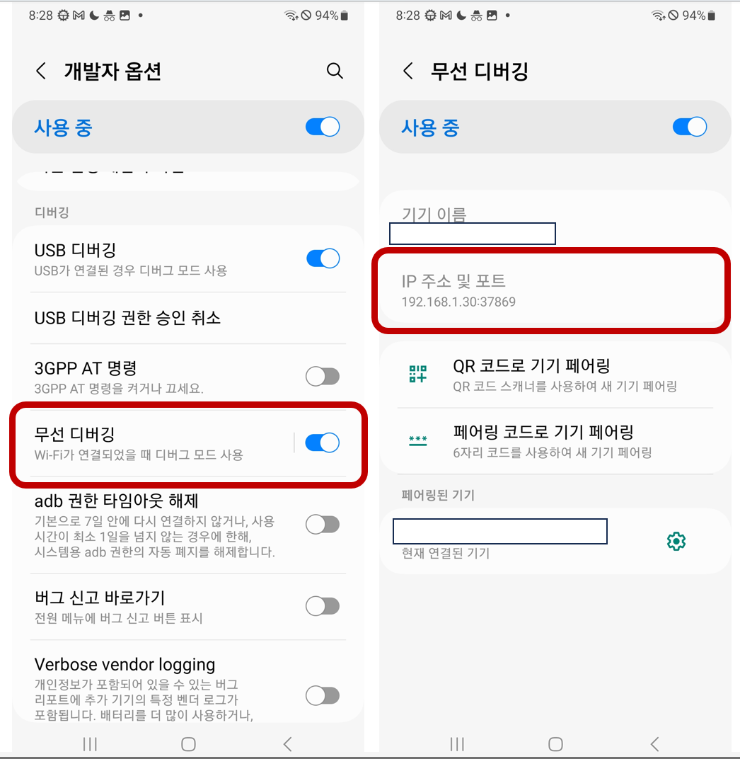 아이폰과 다르게 안드로이드는 무선 디버깅을 지원합니다.